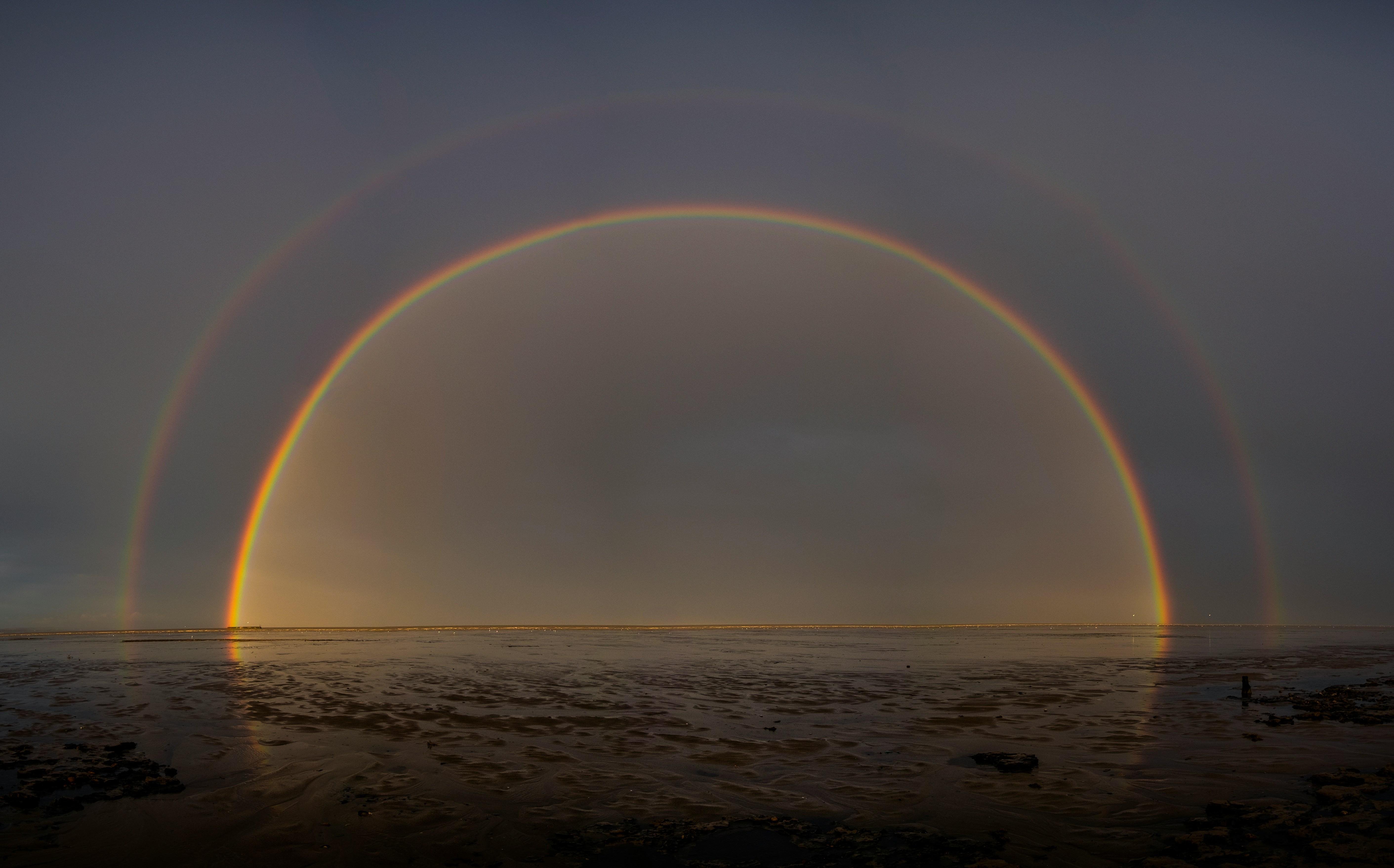 На самом деле, радуга — это круг, а не полукруг. Дело в том, что капли, через которые проходит свет, обладают сферической формой и способны воссоздать исключительно окружность. Но мы видим дугу, потому что центр этой окружности находится ниже линии горизонта, и в итоге различаем свет только от капель, которые выше нас. Если мы поднимемся выше самих капель — увидим всю радугу. Таким образом, наблюдать истинную форму явления можно из самолёта.